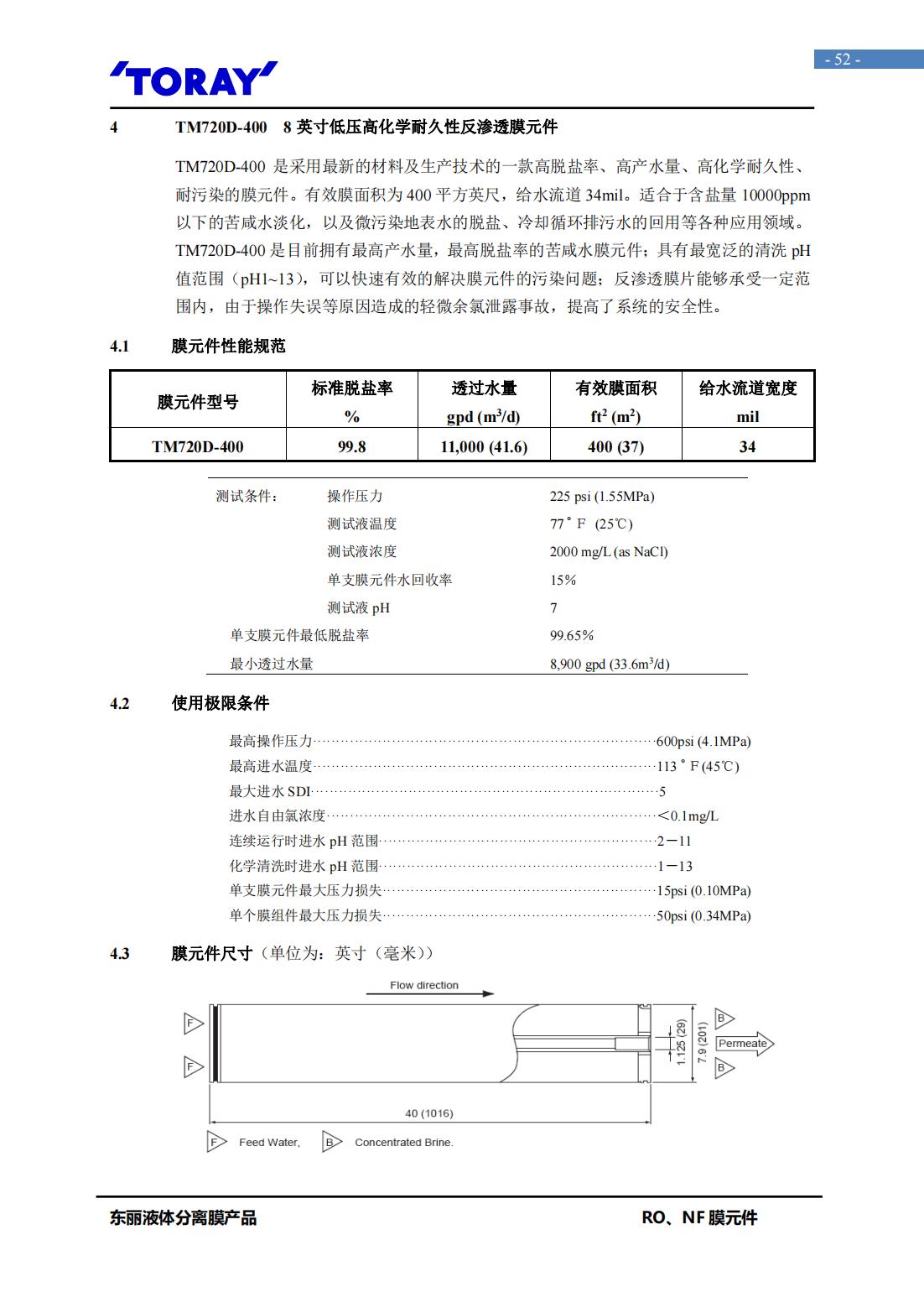 TM720D-400 8 英寸低压高化学耐久性反渗透膜元件